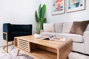The air-conditioned unit includes a separate bedroom furnished with fresh linens and wardrobe space. Guests can prepare meals in the fully equipped kitchen featuring an oven, stovetop, microwave, and electric kettle. The private bathroom contains a hairdryer and towels are provided.