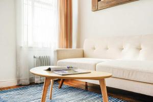 The apartment features a seating area with air conditioning and heating, along with a wardrobe or closet and clothes rack in the sleeping area. The bathroom includes a bathtub, towels, and a hairdryer. Guests can enjoy entertainment on the TV while using free Wi-Fi throughout the unit.