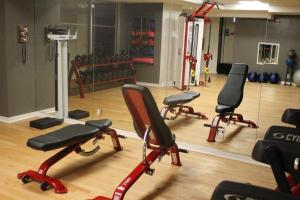 Guests have access to an elevator within the building along with recreational facilities such as a fitness center. The front desk operates around the clock with concierge services available to assist throughout their stay.