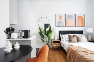 This non-smoking studio provides a living area with heating and air conditioning alongside a sleeping space equipped with a wardrobe. Guests can prepare meals in the fully equipped kitchen that includes a stovetop, dishwasher, and oven. The apartment also contains a private bathroom with a hairdryer.