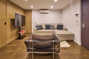 Entertainment is provided by a flat-screen TV in the seating area where guests can also find a sofa bed. Complimentary Wi-Fi is available across all rooms and common areas. Additional amenities include towels, linens, bathrobes with shampoo and conditioner supplied in the bathroom, an iron for garment care, bottled water on arrival, as well as smoke detectors for safety. Pets are permitted at this residence.