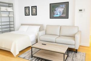 The studio includes air conditioning, heating, and hardwood floors in the sleeping area. Inside, guests will find a fully equipped kitchen with a dishwasher and oven alongside a washing machine. The living space contains a flat-screen TV with free Wi-Fi throughout the apartment. A private bathroom is fitted with shampoo and features a shower.