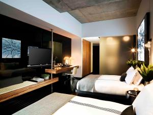 On-site facilities include Make Believe rooftop social club with an inventive cocktail list alongside Blue Ribbon Sushi Izakaya serving sushi and yakitori. Guests can also relax at the wellness area sauna or enjoy entertainment through VOD services available in common areas. The property features luggage storage service, ironing facilities within rooms equipped with coffee machines and alarm clocks. A 24-hour reception ensures secure entry via access cards while accommodating pets.
