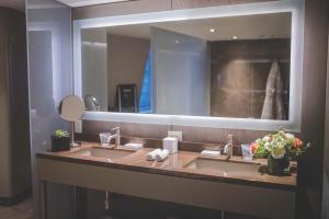 The hotel features on-site dining at Charlie Palmer Steak IV alongside the Charlie Palmer lounge open daily. Cocktails can be enjoyed on the rooftop bar St.Cloud. Additional services include grocery deliveries onsite as well as meal delivery to rooms. A 24-hour front desk provides concierge assistance, wake-up calls, information on cycling routes nearby and yoga sessions for guests seeking leisure activities. Free Wi-Fi is accessible throughout the property.